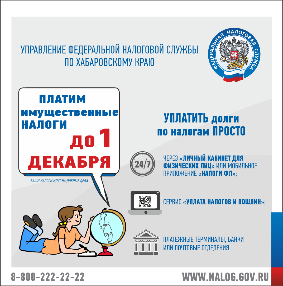 Проконсультироваться по вопросам налогообложения имущества физических лиц можно непосредственно в Управлении ФНС России по Хабаровскому краю по телефону:
